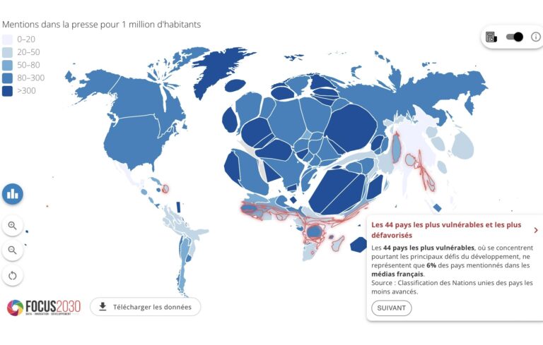 Quels sont les biais de représentation du monde des médias français ? Découvrez notre carte interactive des pays selon leur niveau de couverture médiatique qui révèle une invisibilisation des pays du "Sud global".