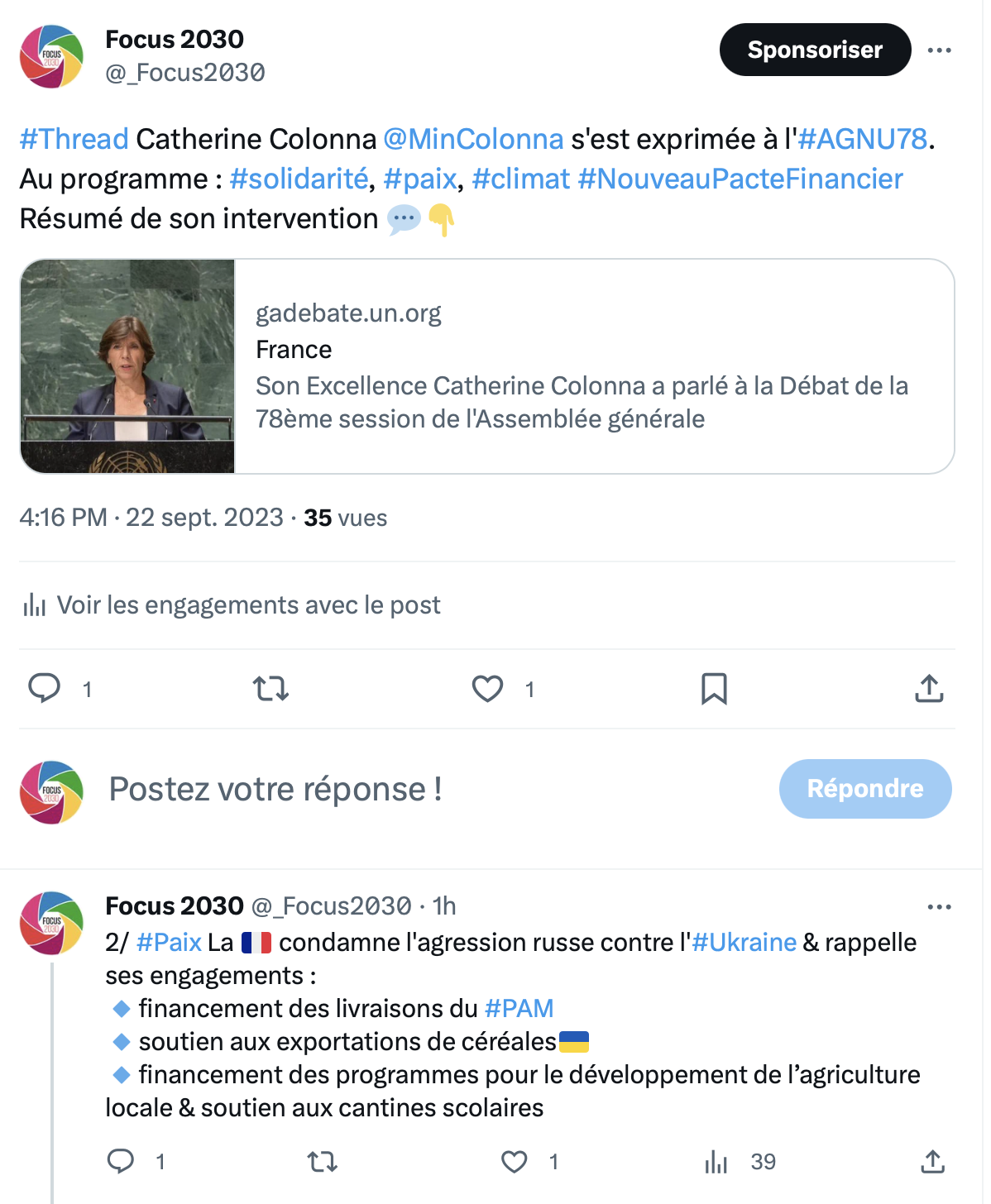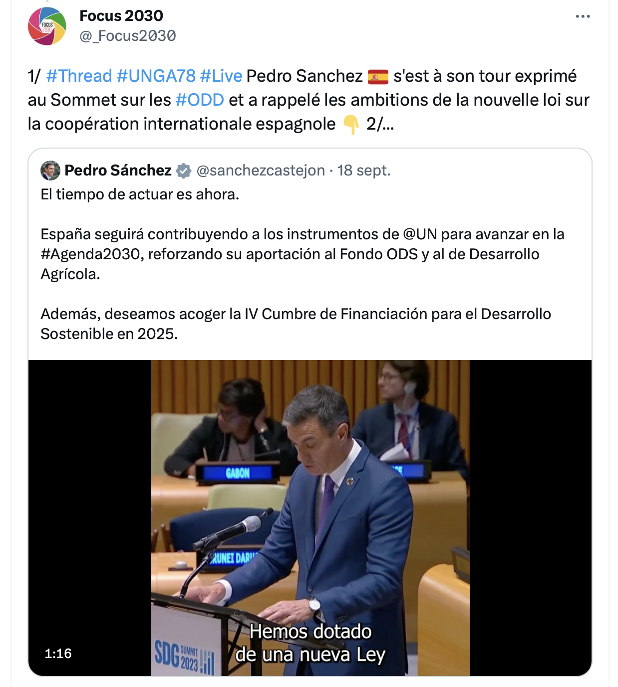 Focus 2030 a publié un #Live tweet des interventions de la France et l’Espagne à l’Assemblée générale des Nations unies