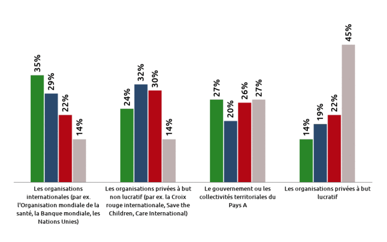 Lorsque les français sont interrogés sur qui doit en priorité venir en aide aux populations des pays pauvres ou en développement, les réponses se concentrent principalement sur trois types d’acteurs. Les gouvernements tant ceux des pays riches (17%) que ceux des pays pauvres (15%) d’une part, et les organisations internationale (16%) d’autre part, sont plébiscités […]