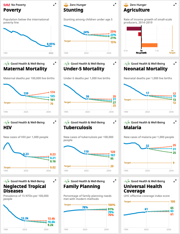 Find the latest data on 18 indicators of SDGs 1 to 6 and 8 on the Gates Foundation website.