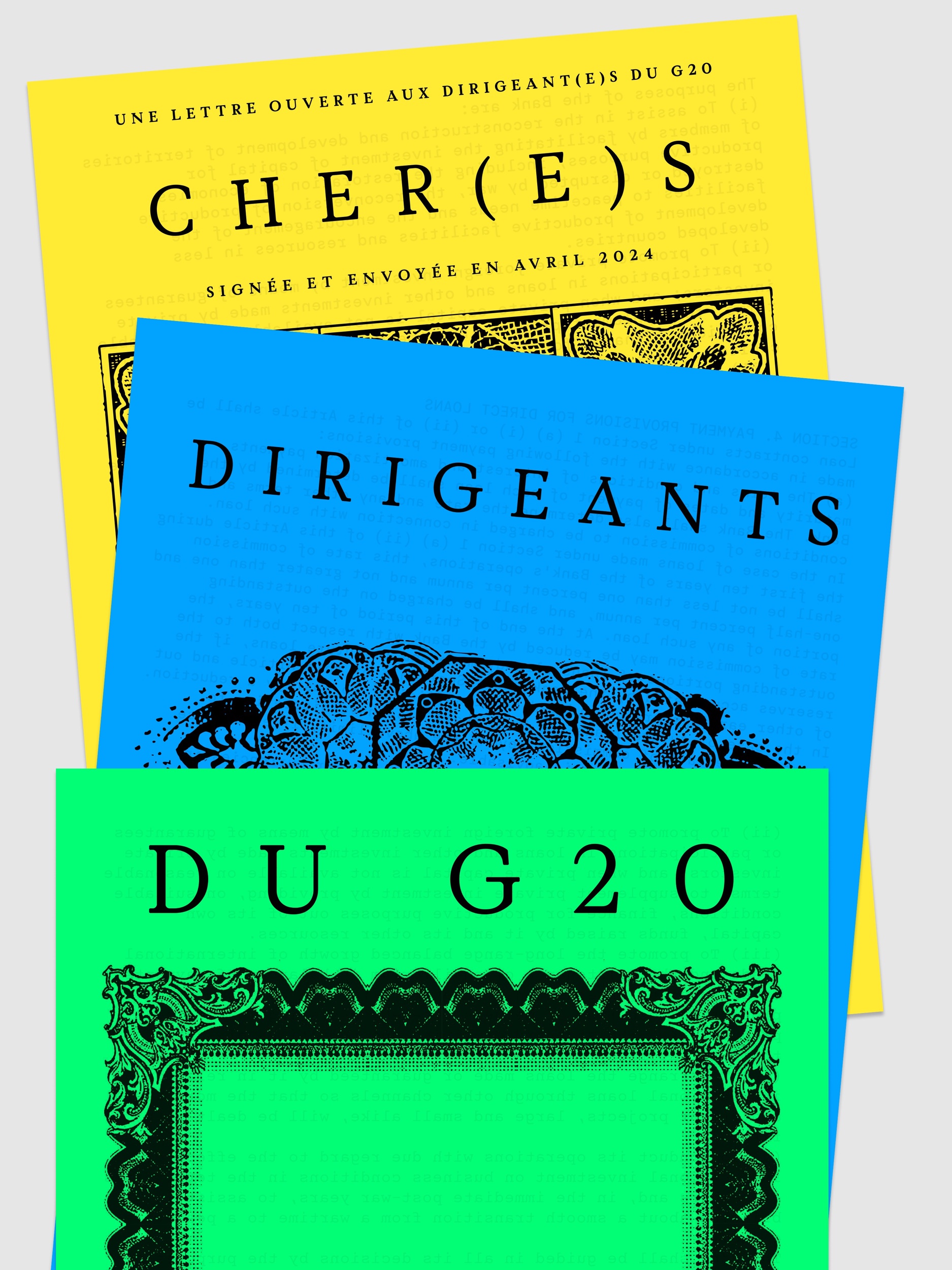 En marge des réunions de printemps de la Banque mondiale et du FMI, qui se tiennent du 17 au 19 avril, Project everyone publie une lettre ouverte pour appeler les dirigeants des pays du G20 à transformer et adapter leur système financier au service d’un avenir durable pour les individus et la planète. Une centaine d’activistes, anciens dirigeant·e·s, chercheur·e·s, et artistes exhortent les pays du G20 à :